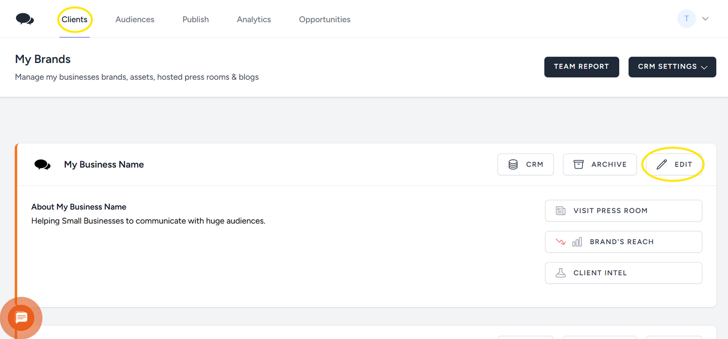 2- Click on 'Edit' on the business profile you want to set the media requests for